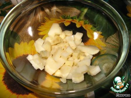 Картофель почистить и порезать кубиками.