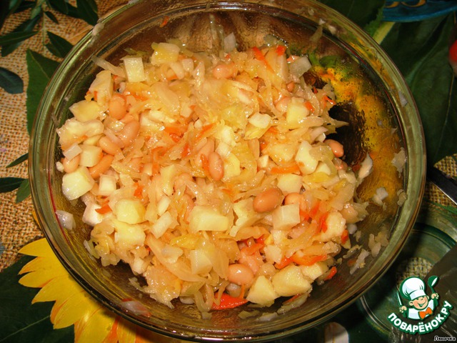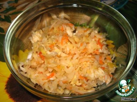 Добавить в чашку квашеную капусту.