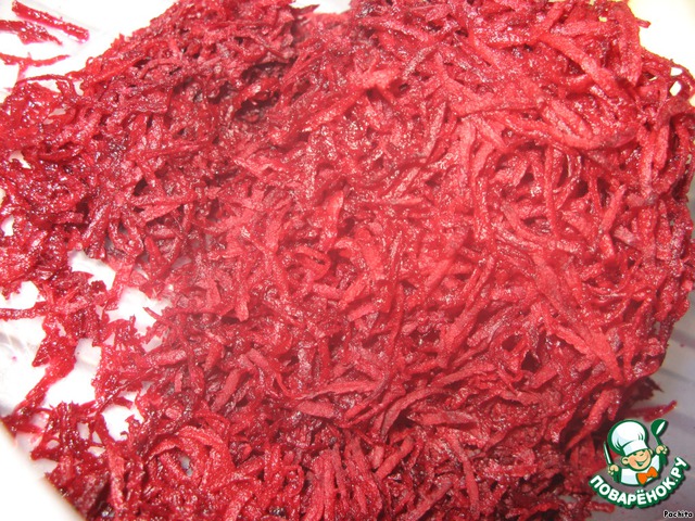 Очищенную свеклу натереть на мелкой терке.