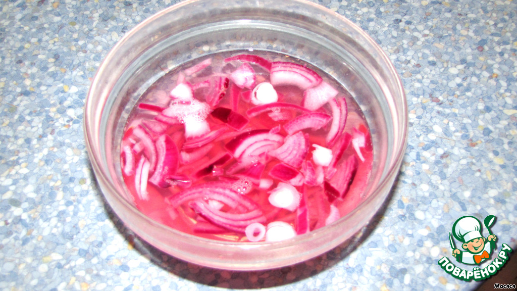 Заливаем кипятком, добавляем уксус и оставляем минут на 10