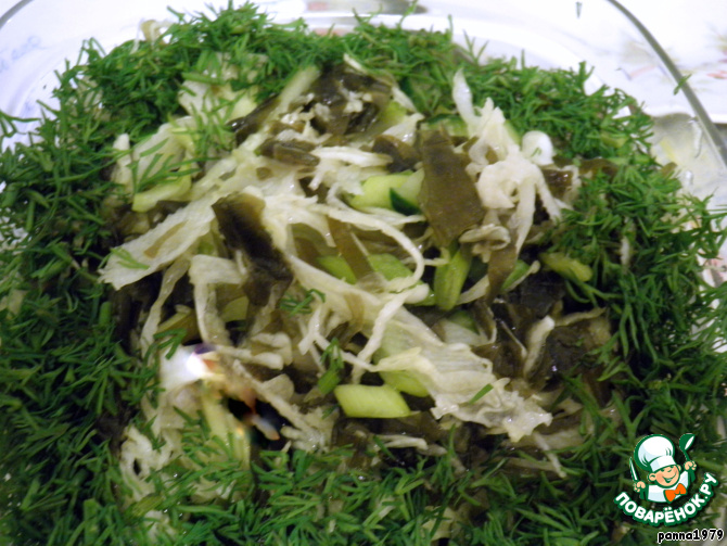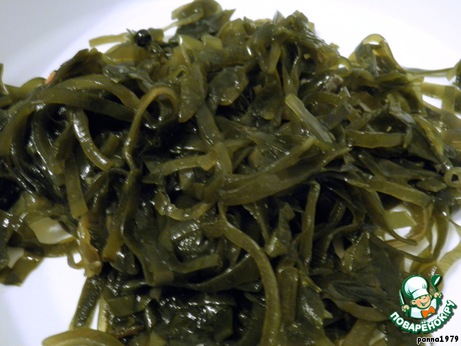 Морская капуста нужна не острая. Я брала в магазине под названием "Салат Ламинария". Состав ее капуста, соль, душистый перец и подсолнечное масло.
