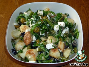 | Еще один картофельный салатик:) Приятный пряно-острый картофельный салат со смесью черных и зеленых оливок. Стручковая фасоль пропитывается горчично-лимонной заливкой и приобретает совершенно особенный вкус и аромат. Свежая зелень и сладкий перец уравновешивают вкус салата. Спасибо за рецепт lentyajka_01 :) |