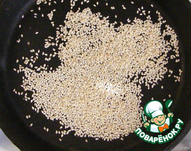 Кунжут поджариваем на сухой сковороде до золотистого цвета.