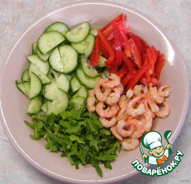 Салат из огурцов, руколлы, креветок