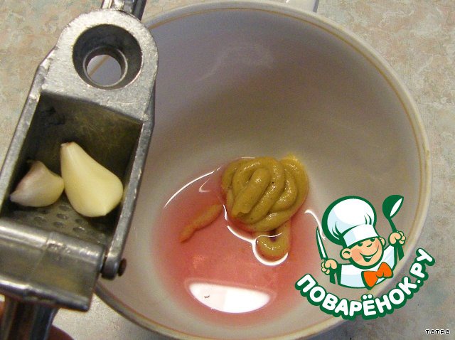 Наш соус: 1 ст.ложка виноградного уксуса+1 ч.ложка горчицы+ измельченные 2 зубчика чеснока.