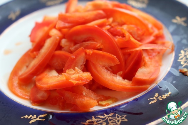 Нарезать сладкий перец соломкой.