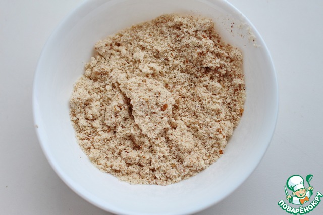 Измельчить орехи в муку в кофемолке.