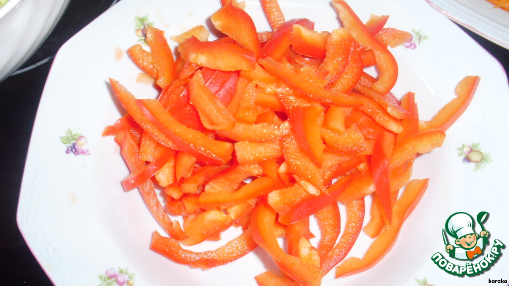 ; -) В рецепте стояла консервированная кукуруза - 100 гр, но я еe очень редко использую, а для этого салата, в котором изобилие свежих овощей, посчитала консервированный продукт лишним.