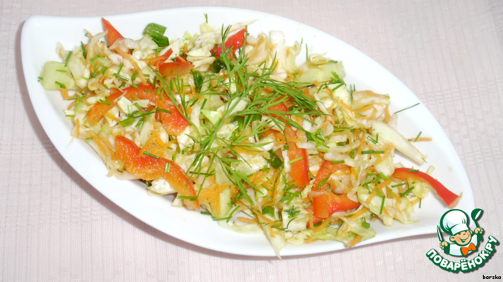 | Всеми любимый и простенький салат из капусты (немецкий кулинарный журнал). Что меня привлекло в нeм? Возможно, пропорции и болгарский перец. Получилось, действительно, очень вкусно! Поэтому и предлагаю данный рецепт! |
