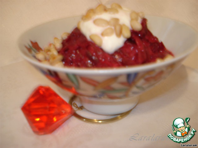 | Вроде бы несочетаемое - свекла и гламур, да? Привыкли мы, если свекла, то с чесноком, майонезом, в лучшем случае с орехами и черносливом… Вкусно, полезно, да и наше это... Я еe никогда не чуралась - ела, только всегда смущал еe немножко "приземлeнный" имидж и привкус какой-то простецкий. Ну, борща там с неe заварганить, "шубу" забацать - вроде как для того она и рождена... Мелькают у нас на сайте очень достойные рецепты со свeколкой, решила и я искушать салатика... |