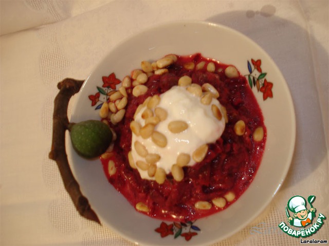 Скажем, вкус поразил своей изысканностью: свежесть, лёгкая кислинка, пикантность и самое интересное, никакого признака "земного" происхождения исходного продукта! Очень даже гламурно! Если бы не сама готовила, то и не догадалась бы, из чего... Хотя, цвет, этот офигительный цвет...