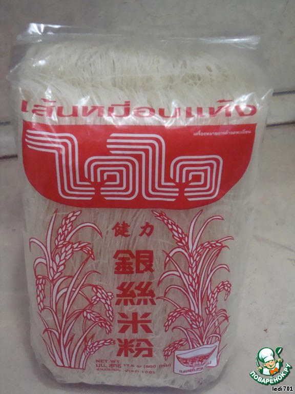 | Я очень люблю рисовую лапшу. Поэтому нашла рецепт салатика в недрах инета, немного переделала под свой вкус и вот что у меня вышло... |