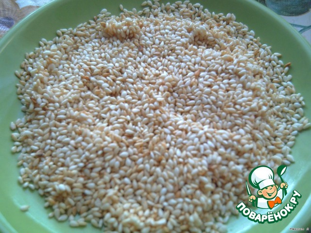 Обжариваем на сухой сковородке семена сезама,чтобы они подрумянились!