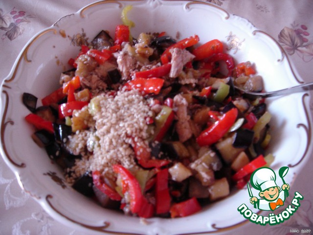 Соединить все ингредиенты, если необходимо посолить по вкусу, поперчить и добавить кунжут.