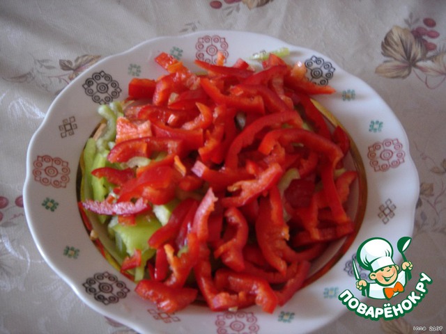 Болгарский перец помыть , очистить от семян и порезать соломкой.