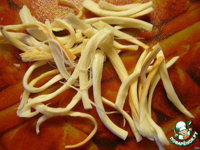 Сырную косичку разбираем, режем ее где-то по 5 см.