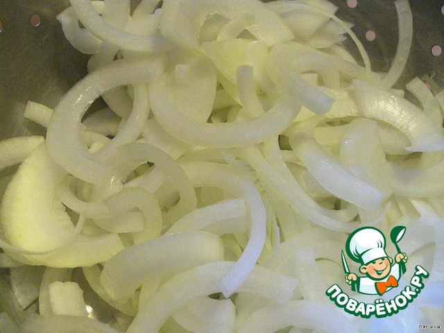 Лук нарезаем полукольцами.