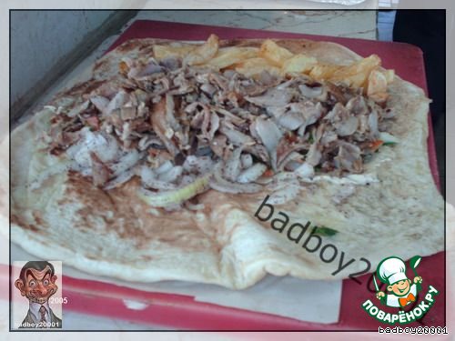 Обязательно и лафа, и пита, и багет смазываются предварительно хумусом и поливаются в конце тхиной для сочности. Всё это производится в присутствии потребителя: намазывается, вкладывается, заворачивается и имеет свежий вид. Важным дополнением ко всему являются соленья из цветной капусты, моркови, маленьких баклажанов, огурцов, острых перчиков, оливок.