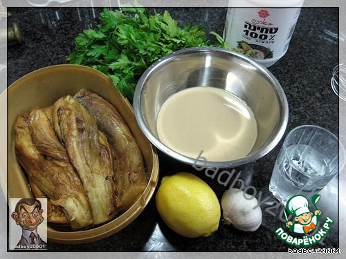 для самой тхины нам понадобится, тхина неразбавленная, лимон, чеснок, простая вода, и специи
