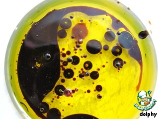 Для заправки смешайте масло и уксус. Удобно делать это в небольшой баночке, закрывающейся крышкой.
