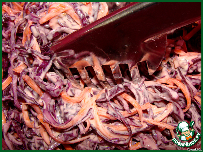 | Летний салат "на скорую руку", а всего-то и надо - краснокочанную капусту и морковь... |