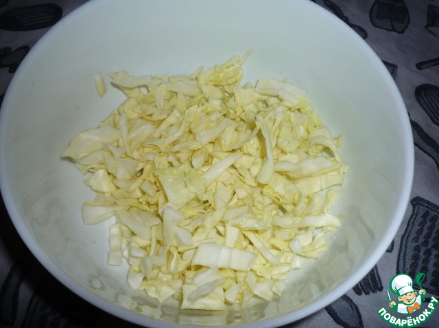 Капусту нашинковать, перетереть с солью, чтобы дала сок.