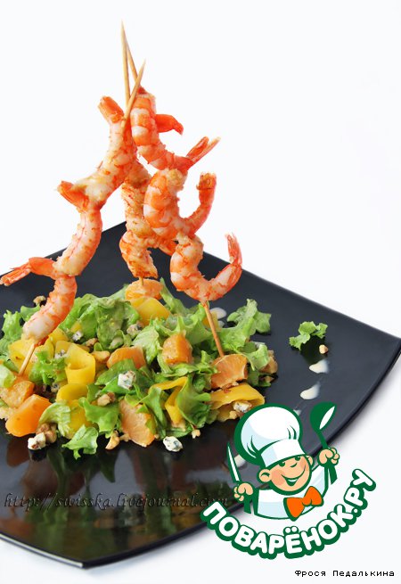 | Вариант подачи легкого салата с оригинальным соусом и креветок на шпажках. Просто и эффектно! По мотивам мастер-класса в "Школе Гастронома". |