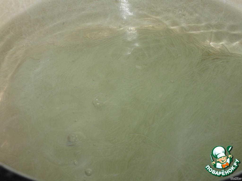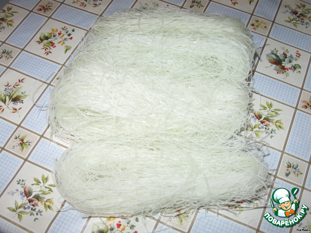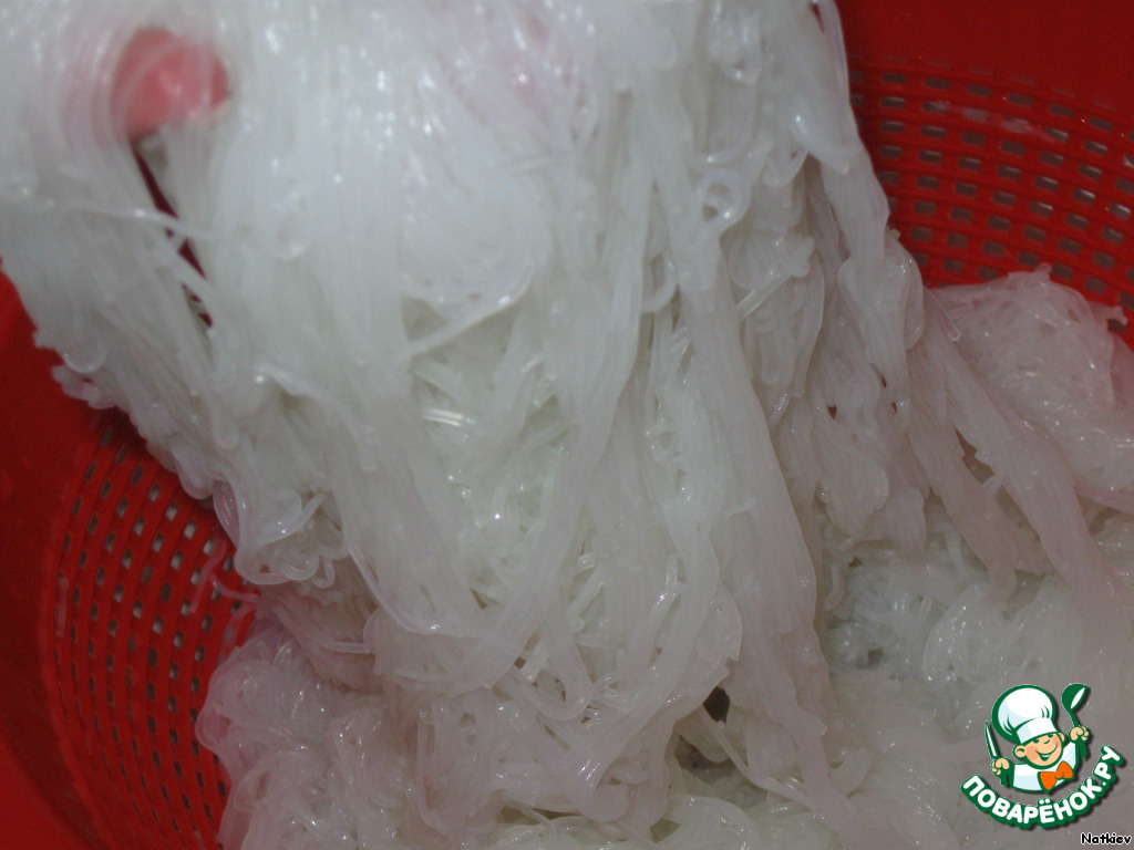 Вот такая лапша из крахмала бобовых была у меня. Упаковка 250 г.