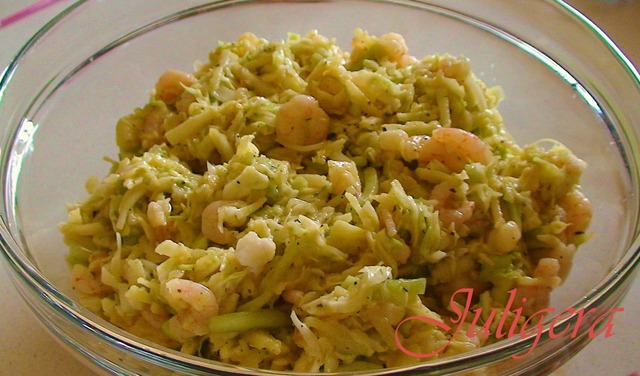 | Сначала я сомневалась во вкусовых качествах салата - капуста и креветки... Думала, что и креветки-то затеряются, но... Результат превзошeл все ожидания! Салат оказался ну очень нежным, потрясающе вкусным. Заправка - нестандартная, ароматнейшая. Вобщем, получилось ВЕЛИКОЛЕПНО!!! Рецепт из журнала "Школа гастронома". |