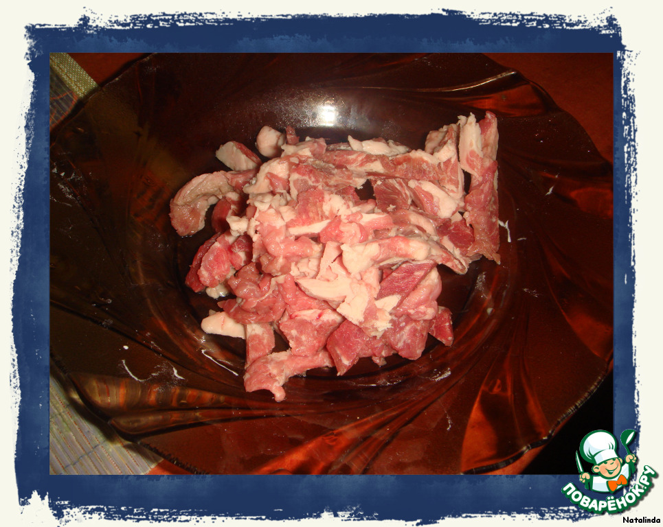 Мясо режем на тонкие маленькие полоски