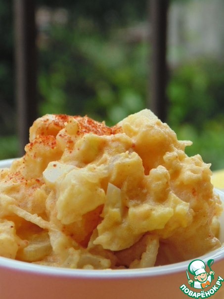 | Популярный салат в Америке и Канаде, он продается уже готовый, но легко приготовить дома и взять с собой на пикник. А с маринованным луком в соевом соусе вкус только выигрывает. |