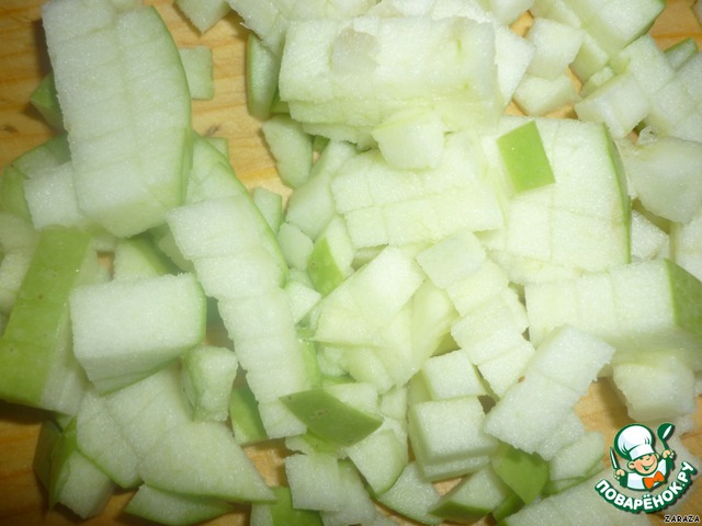 Яблоко порезать кубиками.