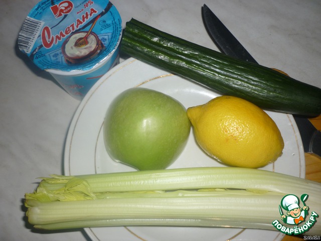Стебли сельдерея порезать.