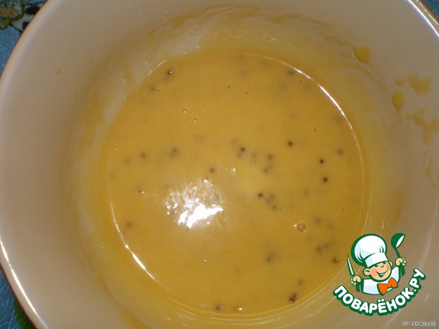 Взять яйцо и отделить желток от белка.К желтку прибавить горчицу и уксус,слегка взбить.Не прекращая взбивать,тонкой струйкой влить кунжутное масло.Заправить смесью салат.
