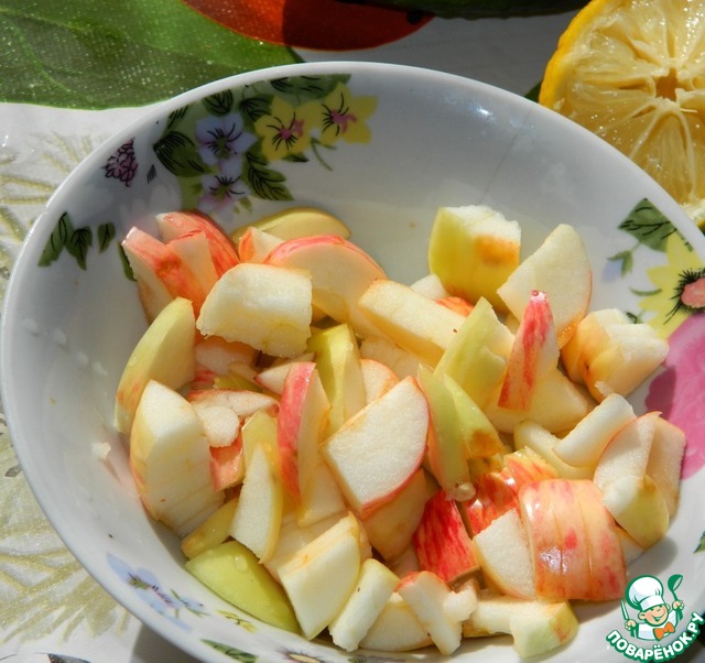 Режем яблоки. Поливаем их лимонным соком, чтобы не потемнели.
