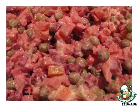 овощи отварить, очистить от кожицы и нарезать кубиками