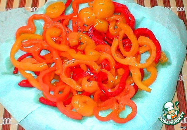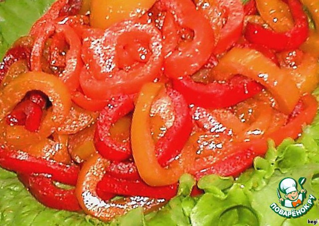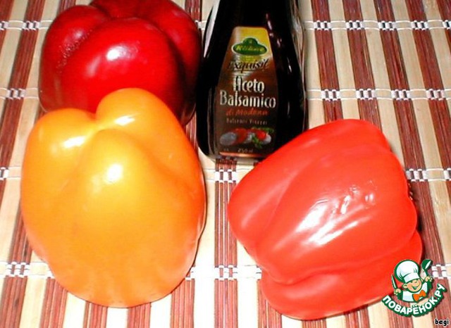 | Этот салат прекрасно подойдет для праздничного стола! Потому что, этот маринованный перец - очень вкусный! Хотя сейчас в это время немного дорого, но эта замечательная закуска того стоит, и самое главное – витамин «С» не распадается при тушении и мариновании перца, тем он и хорош! Попробуйте, очень рекомендую! При мариновании перца не забудьте, пожалуйста, бальзамический уксус, который придаст блюду фантастический вкус! |