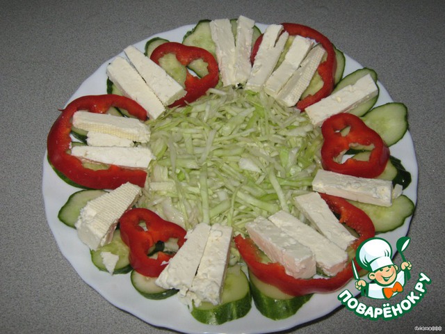 Солить не обязательно-брынза и подсоленная капуста есть в салате.