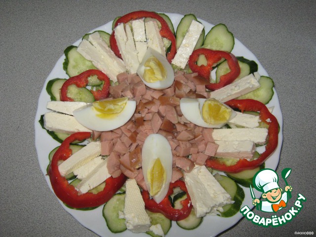 | Салат по мотивам болгарской кухни. В нем сочетаются продукты, которые мы обычно вместе в салатах не используем. Но, поверьте, очень вкусно!!! |