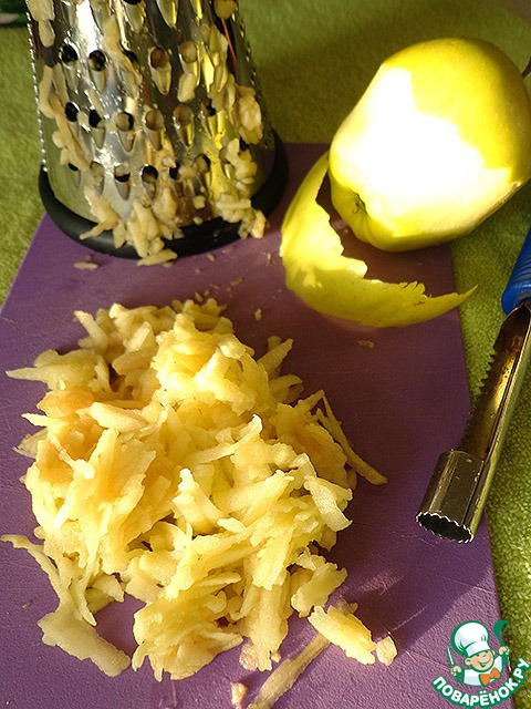 Одно большое зелёное яблоко очистить и натереть на тёрке.