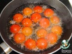 1 ст.л растительного масла разогреть в сковороде и обжарить помидорки с сахарной стороны.