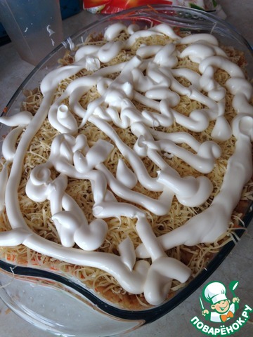 3 слой: майонез (равномерно распределите по всей поверхности)