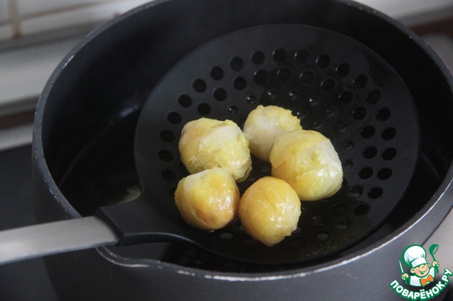 Бросаем брюсельскую капусту в воду и варим до готовности (3-4 минуты).