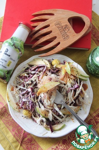 | Все Вы, наверное, помните старый добрый витаминный салат, которым нас кормили в детстве. В его составе была морковь, капуста и яблочко, а заправлялся он сметаной. С точки зрения правильного питания - это был 100% диетический и полезный салат. Максимум витаминов при минимальном количестве жиров. Предлагаю Вам попробовать его новую версию, которая, я надеюсь, придется всем по душе. |