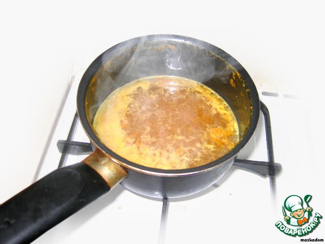 Для соуса: стакан апельсинового сока (я сделала фреш из двух апельсинов) вылить в сотейник или небольшую кастрюльку, всыпать половину цедры и довести до кипения. После этого добавить 2 столовых ложки меда (у меня гречишный) и 2 столовых ложки коньяка. На маленьком огне, помешивая, уварить примерно в два раза. Под конец добавить оставшуюся цедру. В исходном рецепте туда же добавляется щепотка розового перца, но я его не использую – в моем хозяйстве такого не водится. Получается все равно очень вкусно.