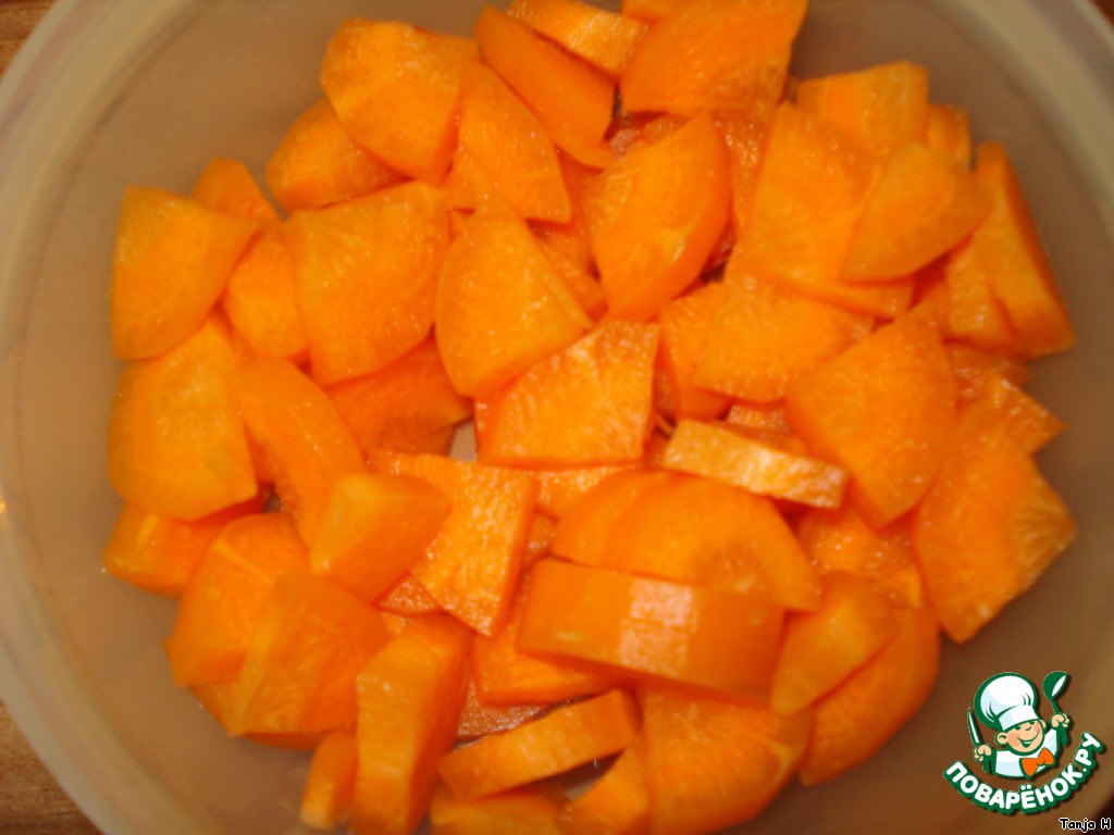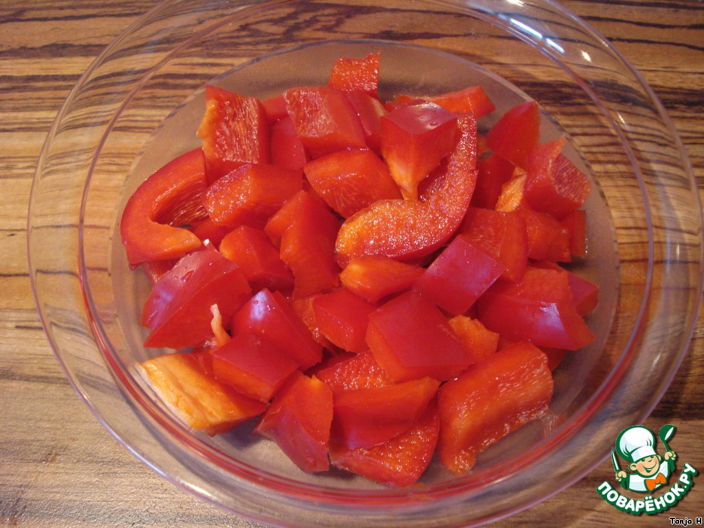Желтую паприку (или болгарский перец - кому как привычней его называть) порезать кубиками или (по желанию) нашинковать.