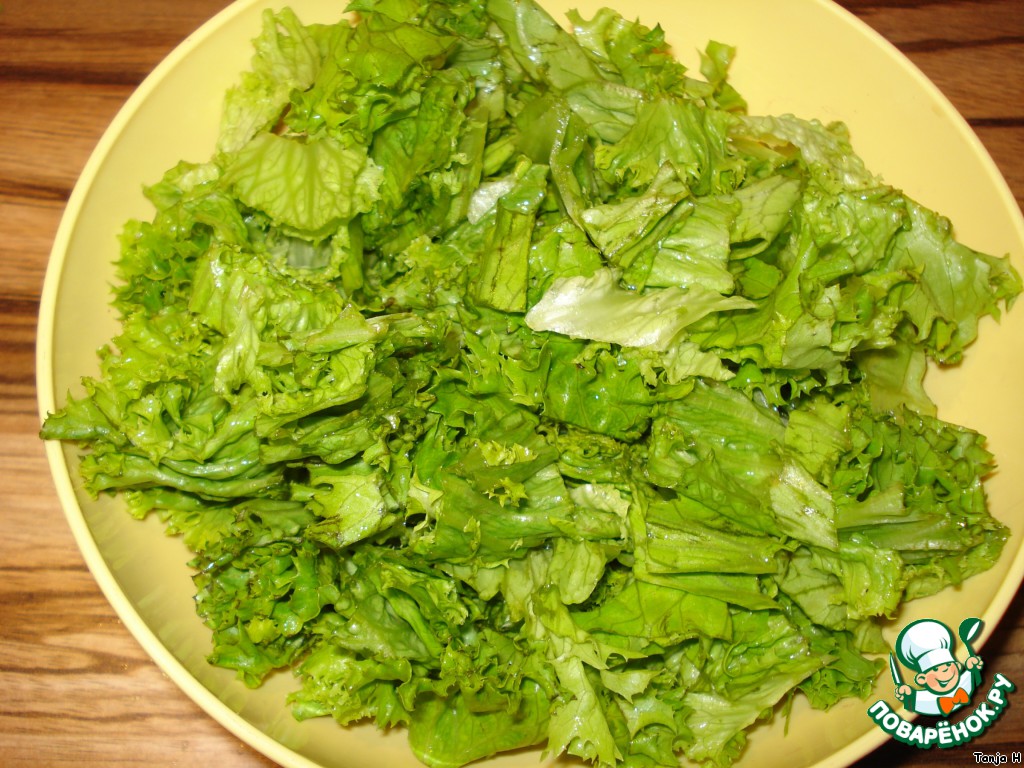 Приготовить наши продукты, помыть, почистить, салат высушить с помощью кухонных салфеток или полотенца.