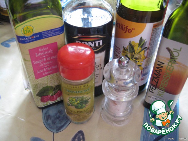 [color=darkred]соус[/color]: масло оливковое, уксус бальзамический, уксус красного вина, масло тыквенное, соль, перец, ароматические травки...