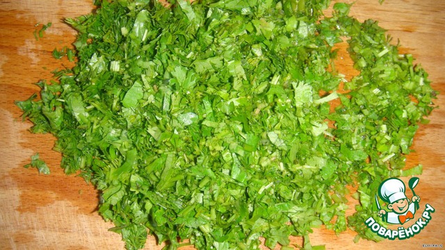 Порезать 2 пучка зелени.