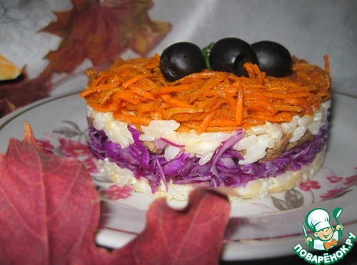 | Вкусный слоеный салат может стать прекрасным украшением праздничного стола. Осенние овощи придают блюду яркий красочный цвет и сочность, а рис, мясо и сыр – сытость. |